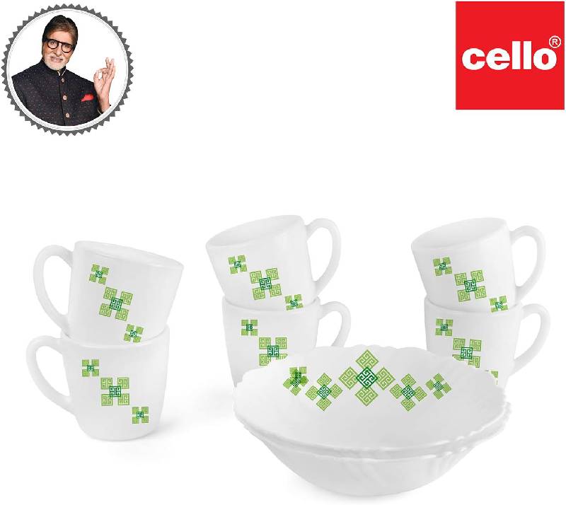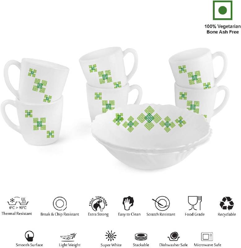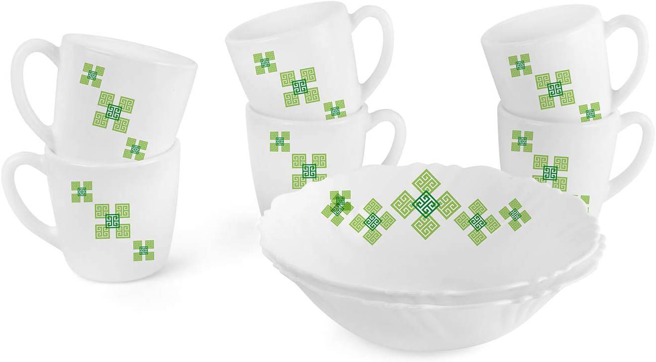 Cello Opal Ware Imperial Quick Bite Set, Green Maze, 8PC, White