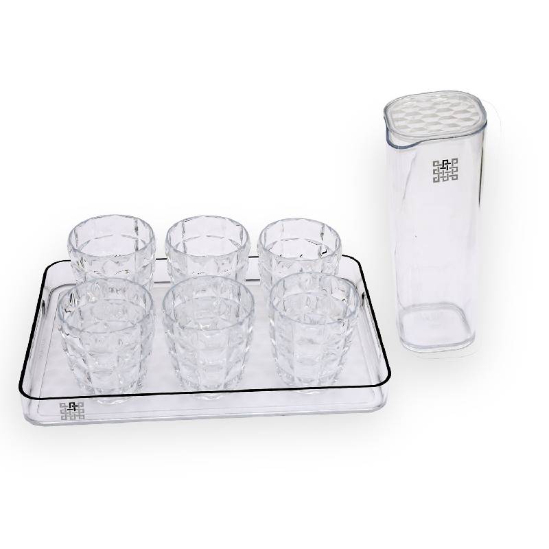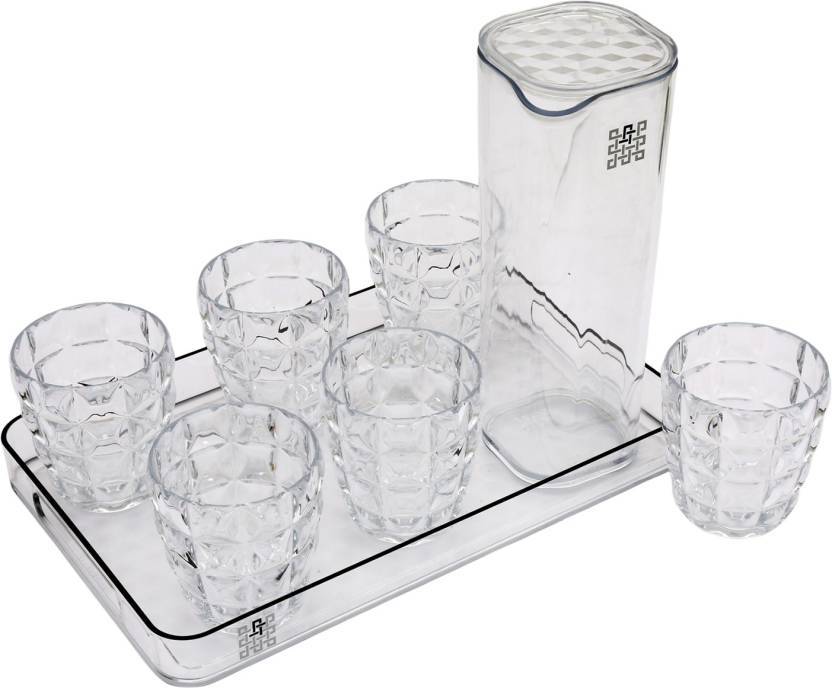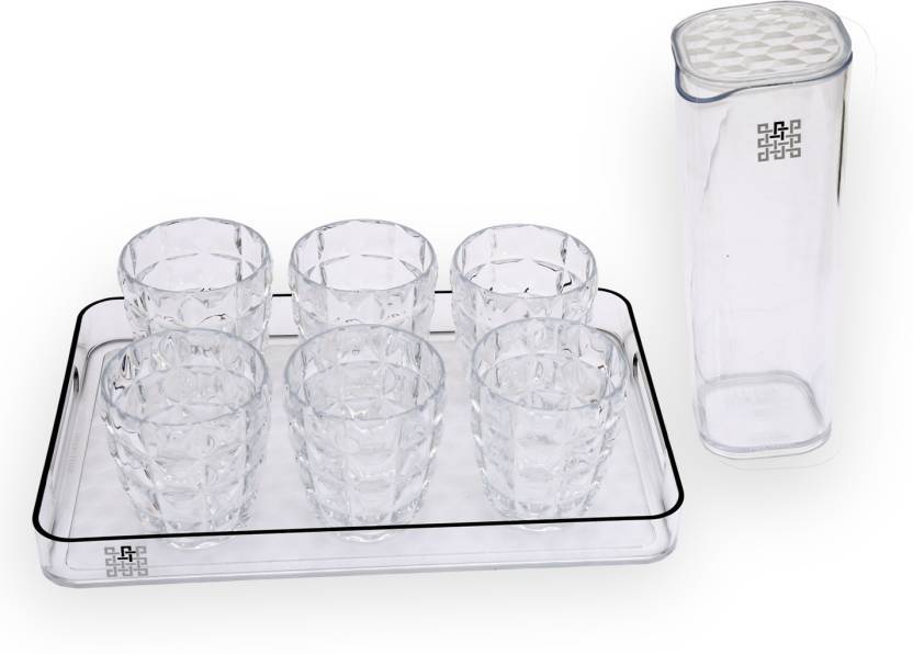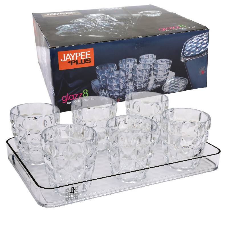 Jaypee Plus Glazz 8 Unbreakable Jug Glass Tray Set Transparent