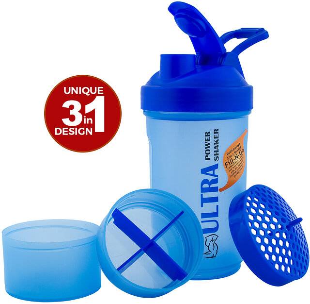 Trueware Ultra Power 3 in 1 700 ml Shaker (Pack of 1, Blue, Plastic)